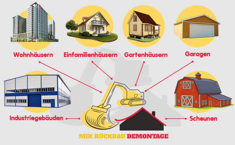 Wir von MIK Rückbau sind auf schnelle und saubere Abrissarbeiten spezialisiert. Unsere umfangreiche Erfahrung und unser Fachwissen ermöglichen es uns, exakte und ordnungsgemäße Abbruchmaßnahmen zu planen und durchzuführen. Dabei übernehmen wir die Demontage von kompletten Wohnhäusern, Industriegebäuden, Einfamilienhäusern, Scheunen, Gartenhäusern, Garagen sowie einzelnen Wänden und stehen Ihnen als zuverlässiger Ansprechpartner zur Seite.